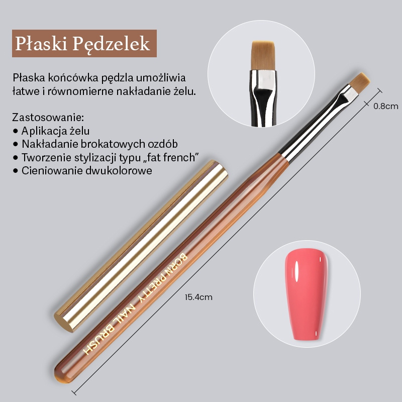 BORN PRETTY - Profesjonalny Płaski Pędzelek do Żelu