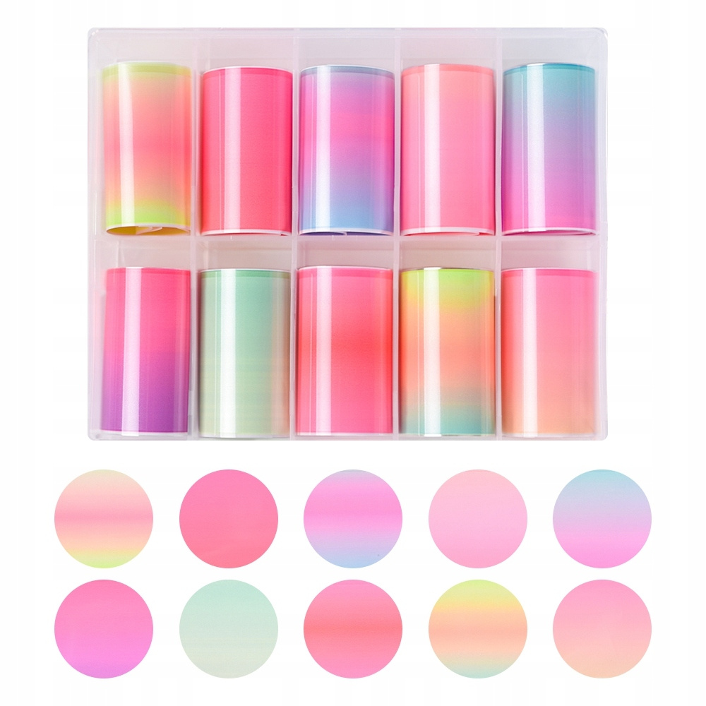 Zestaw dotyczy 10 sztuk różnorodnych wzorów folii w opakowaniu (patrz pierwsze zdjęcie).