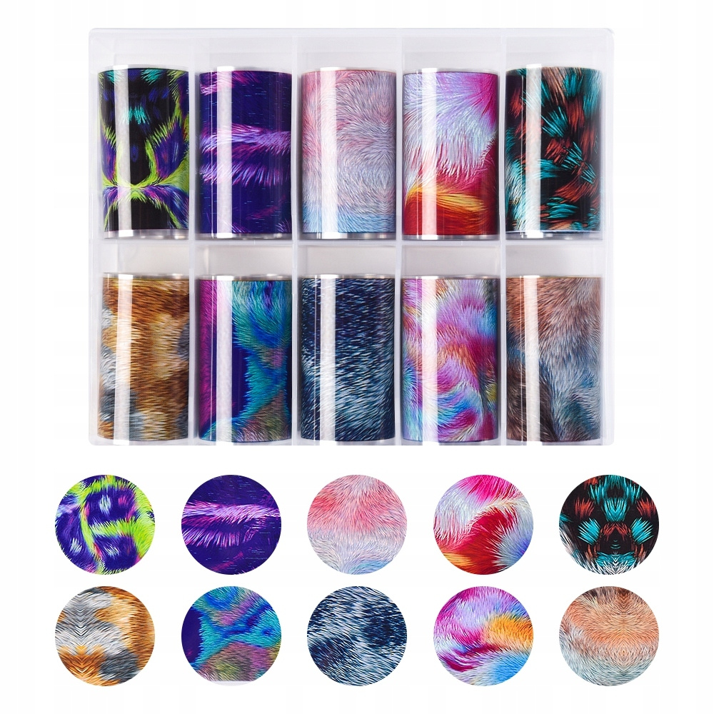 Zestaw dotyczy 10 sztuk różnorodnych wzorów folii w opakowaniu.