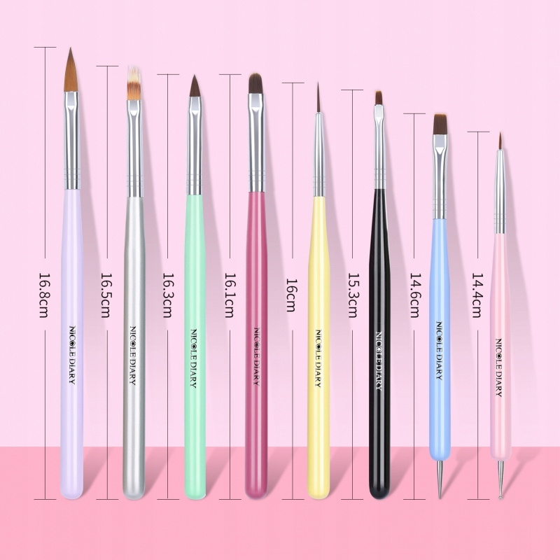 Nicole Diary – Zestaw 8 pędzelków do zdobienia paznokci