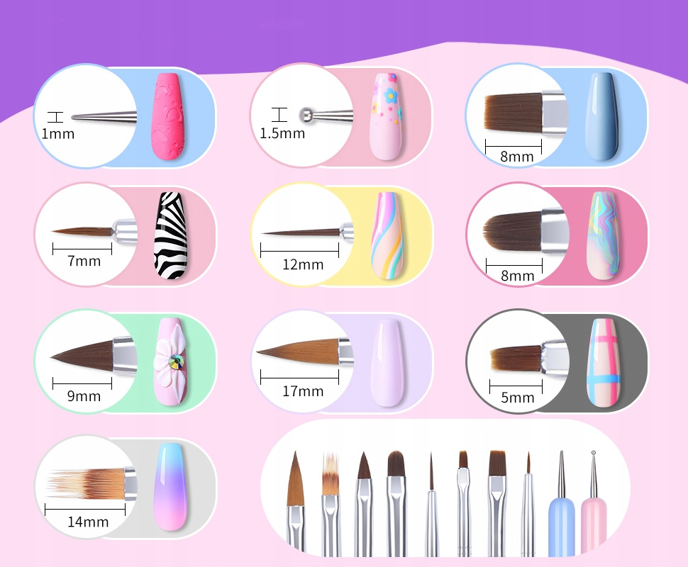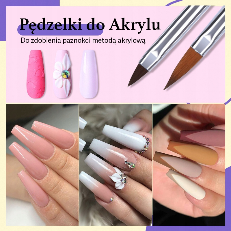 - Pędzelek do zdobień 3D (14 mm) – do akrylowych wzorów i modelowania