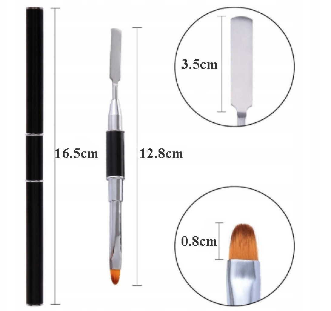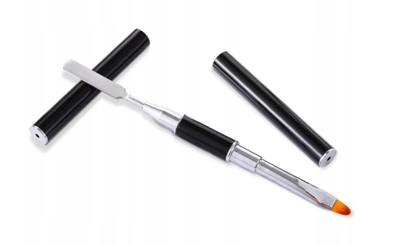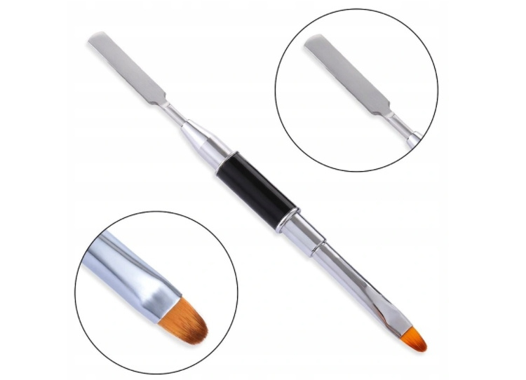 - Metalowa szpatułka - umożliwia bezpośrednie nałożenie produktu na paznokieć. Jest to nieco dłuższa, płaska końcówka – daje precyzję i komfort podczas wykonywania zabiegów manicure.