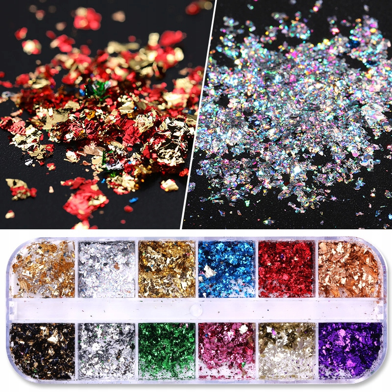 PAZŁOTKO DWUSTRONNE ULTRACIENKA FOLIA CHROM W PŁATKACH DO ZDOBIEŃ